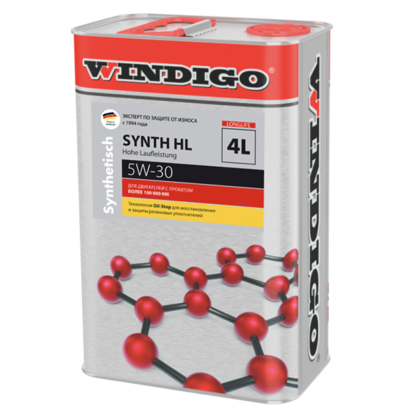 WINDIGO SYNTH HL 5W-30– всесезонное полностью синтетическое моторное масло, разработанное на основе высококачественного синтетического базового масла новейшей технологии синтеза и современных высокопроизводительных присадок. Обеспечивает отличные пусковые качества и высокую надёжность смазывания при низких температурах. Помимо надежной защиты двигателя при экстремальных нагрузках и высоких температурах, при регулярном применении, масло WINDIGO безопасно и эффективно восстанавливает эластичность резиновых уплотнений, сальников, маслосъемных колпачков и других РТД, двигатель дольше не требует технического обслуживания и замены резинотехнических изделий. Тем самым исключается необходимость долива масла, из-за его утекания.
